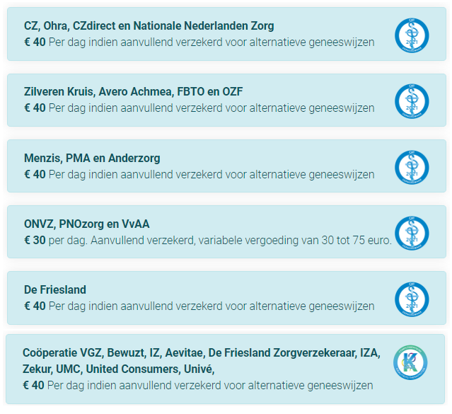 - Zorgverzekering: Ik ben aangesloten bij de CAT (Collectief Alternatieve Therapeuten) en RBCZ (Register Beroepsbeoefenaren Complementaire Zorg). In het geval je aanvullend verzekerd bent voor alternatieve therapie, kan een reflexzone behandeling gedeeltelijk worden vergoed door je verzekering. Houd er rekening mee dat alleen individuele en curatieve therapie voor vergoeding in aanmerking komt. Neem voor meer informatie contact op met de verzekeringsmaatschappij. Hierbij een overzicht van zorgverzekeraars die reflexzonetherapie (gedeeltelijk) vergoeden: Vergoedingen.